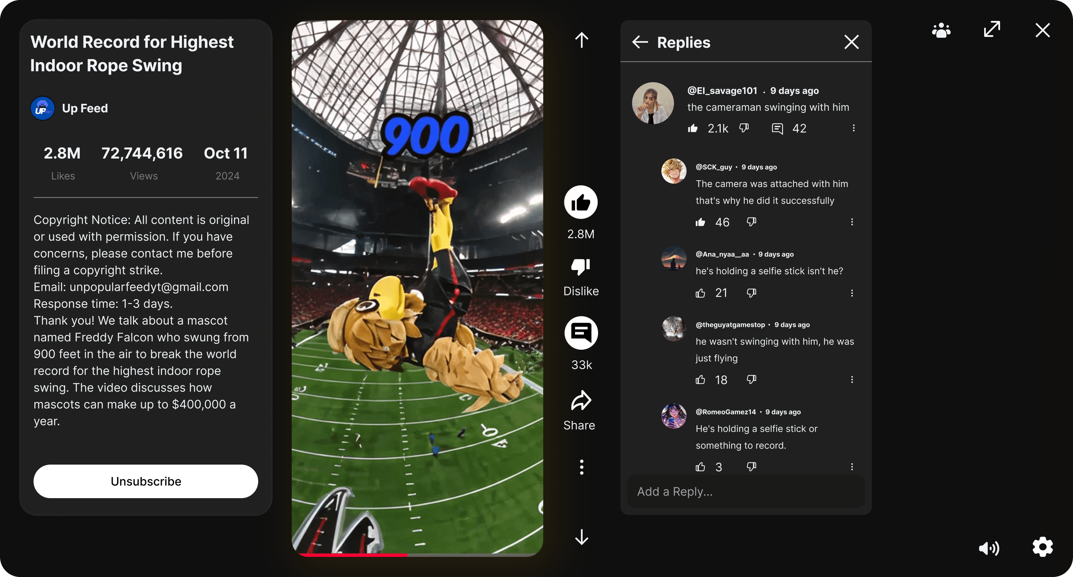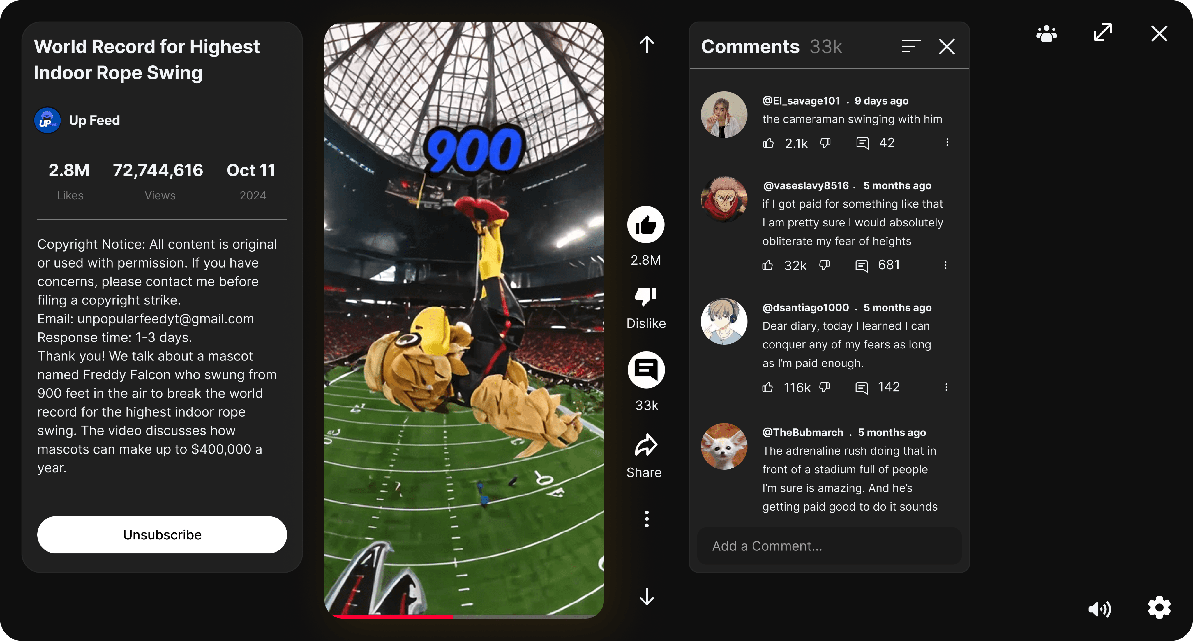Opening the comments section panel previously covered important information, such as the video description and Subscribe button, forcing users to rely on memory or repeatedly toggle panels. Repositioning the comments panel to unused space on the right prevents content overlap and allows users to read comments, access video details, and take actions without losing context.