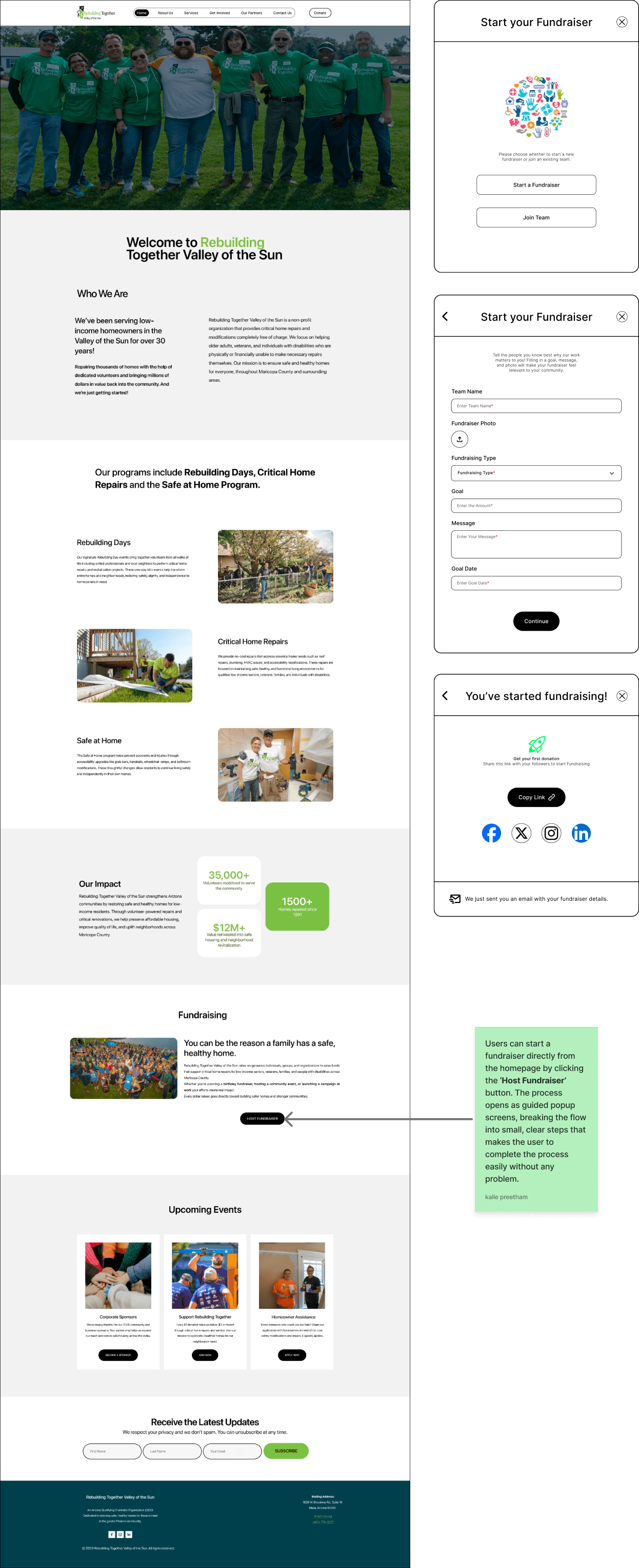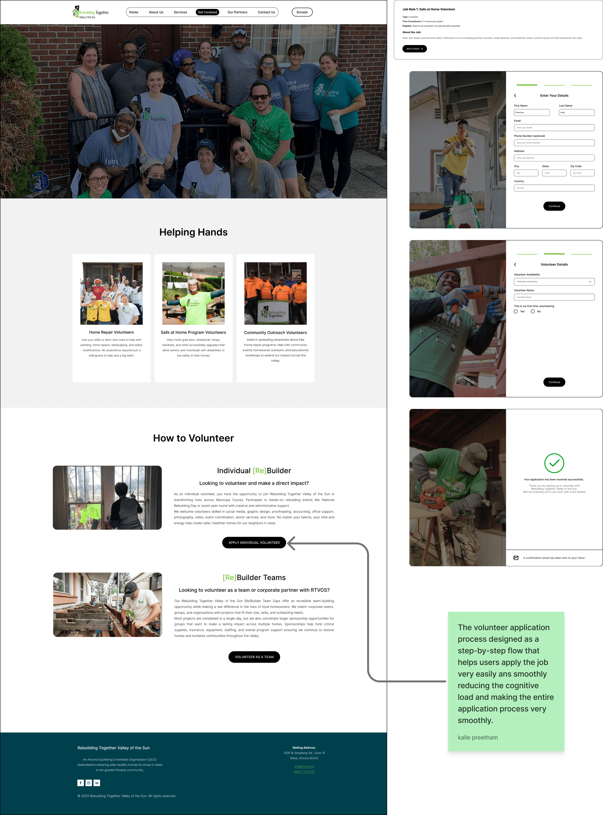 Rebuilding Together Valley of the Sun (RTVOS) is a non-profit organization that depends on its website to drive donations, volunteer participation, and fundraising support for its mission. However, the current platform suffers from fragmented navigation, an unclear information hierarchy, and a lack of system feedback, which makes critical flows confusing and reduces user confidence during high-impact actions. I focused on solving these issues to ensure users can easily understand, trust, and complete their actions, directly supporting RTVOS’s ability to engage the community and sustain its mission.