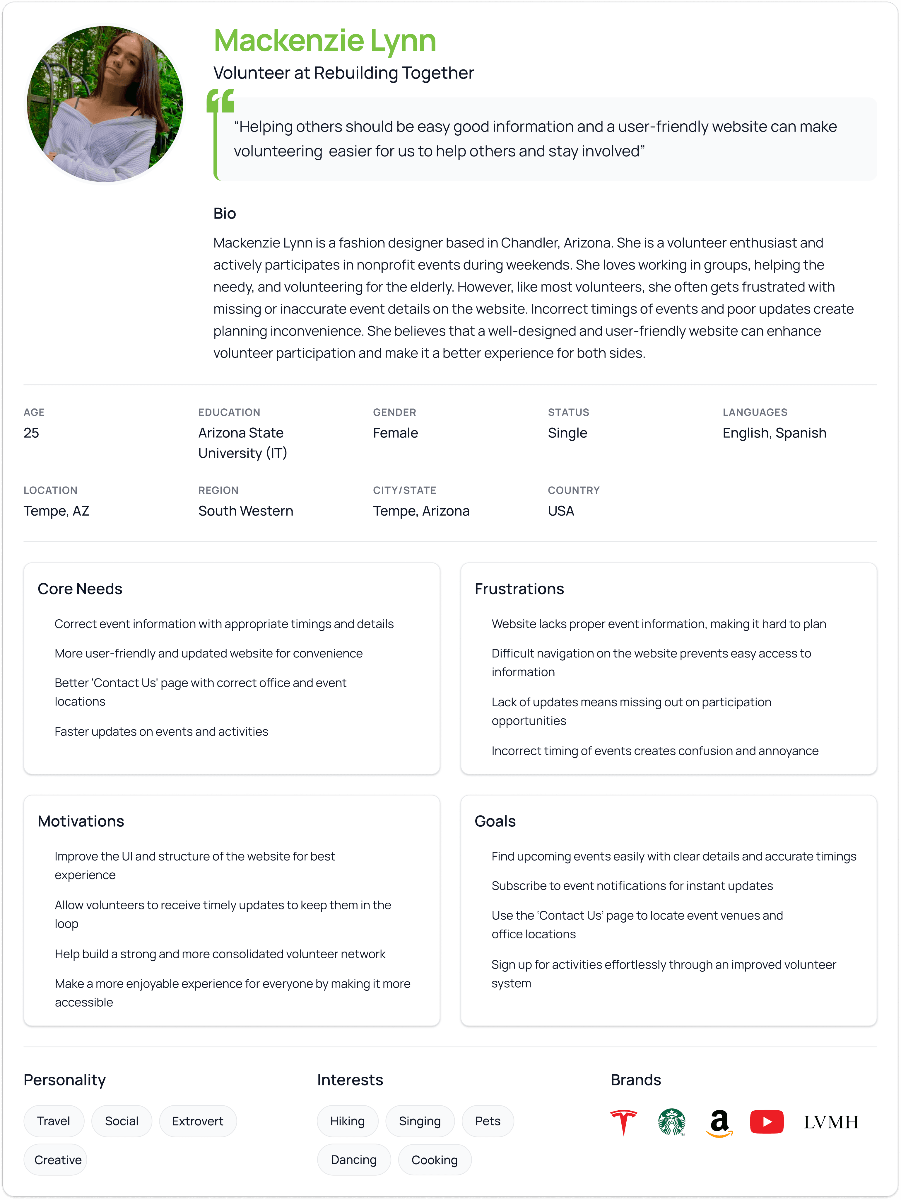 My design process translated usability testing insights into clear, user-centered improvements that simplified key journeys such as donating, volunteering, and hosting a fundraiser. By reducing unnecessary steps, clarifying navigation, and adding consistent feedback and confirmation states, the redesigned experience lowered cognitive load and increased user confidence during task completion. To support these design decisions, I have attached the detailed usability testing and recommendations report Link